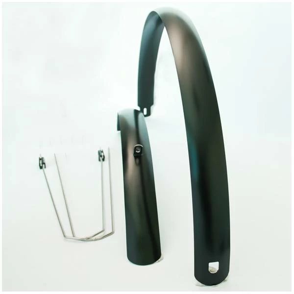 Vervaardigd in sandwich-bouwconstructie (alu-kunststof-alu), extreem stabiel en licht, spatbordstangen met veiligheids-bevestiging, attractieve, hersluitbare stuksverpakking 55 mm, 28″, zwart